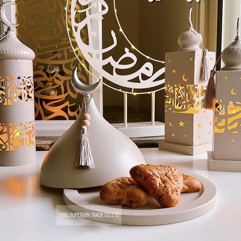 Jusee 2026 Ramadan Metalen Dienblad Moderne Plaat Moslim Thuis Tafeldecoratie