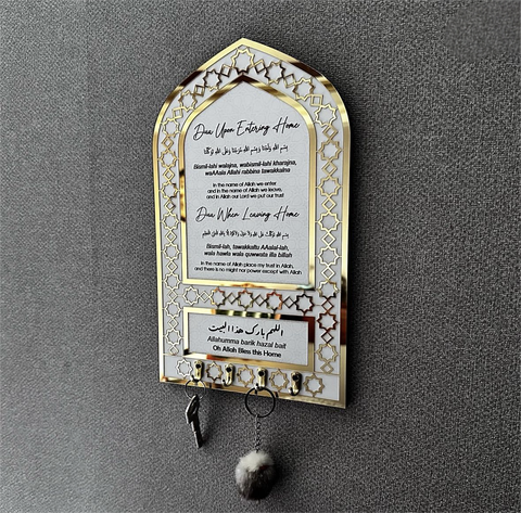 Jusee Islamitische Muur Kunst Moslim Home Decor Houten Acryl Dua Voor Het Betreden En Verlaten Van Huis Islamitische Muur Sleutelhouder