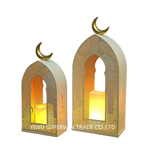 Jusee Islamitische Feestelijke Geschenken Holle Ijzeren Lantaarn Moslim Windlamp Met Raam Home Decor Metalen Candler Houder Ramadan Benodigdheden
