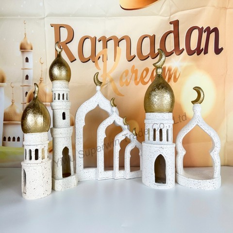Jusee 2026 Ramadan Decoratie Hars Handgemaakte Moskee Decor Ramadan Desktop Decoratie Moslim Eid Mubarak Tafelversiering